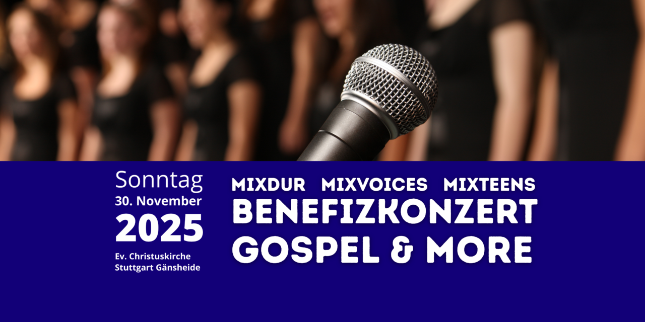 Großes Benefizkonzert 30.11.2025 in der Evangelischen Christuskirche Stuttgart-Gänsheide MixDur präsentiert – Großes „Gospel and More“-Konzert Am 30. November 2025 ist es soweit. Der moderne Chor MixDur vom MGV Neuhausen/Fildern gibt … Benefizkonzert am 30.11.2025 für die SWR Herzenssache weiterlesen