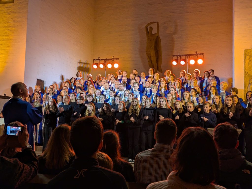 Zuerst erklang das absolute Lieblingslied des Chors: Baba Yetu – das „Vater unser“ auf Swahili. Ein eindrucksvolles Werk, das kraftvoll vom Altarraum durch die gesamte Kirche hallte und schließlich dorthin zurückkehrte. Die Stimmen füllten den Raum wie ein warmes Licht, und das Publikum war hörbar begeistert.