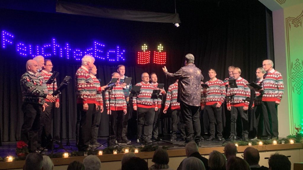 Das Feuchte Eck präsentierte ein abwechslungsreiches Programm aus traditionellen und modernen Advents- und Weihnachtsliedern, darunter Klassiker wie „Es kommt ein Schiff geladen“ und stimmungsvolle Highlights wie „Cantique de Noël“ und „That’s Christmas To Me“.