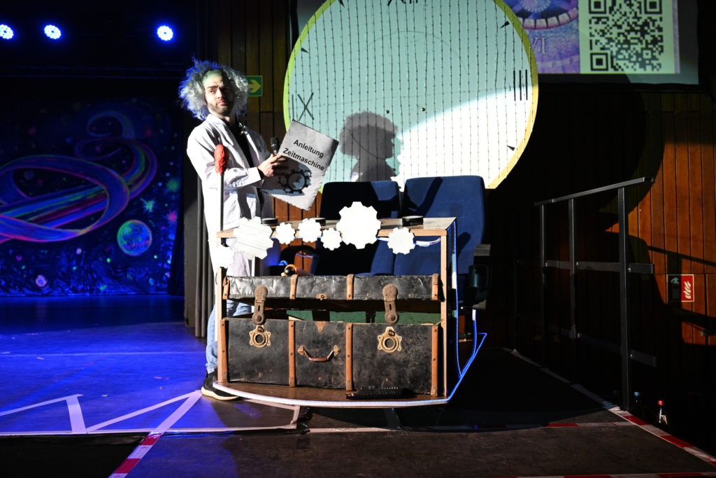 Doch nicht nur auf, sondern auch hinter der Bühne wurde Großartiges geleistet: Die Technik-Crew, stilecht als Doc Brown unterwegs, sorgte dafür, dass die Zeitmaschine jederzeit einsatzbereit war, schob Kulissen an den richtigen Platz und platzierte Mikrofone punktgenau. Das Schminkteam bewies erneut ein meisterhaftes Händchen und verwandelte die Aktiven mit viel Liebe zum Detail in Prinzessinnen, Pharaonen, Astronauten und mehr. Auch die fantasievollen Kostüme waren wieder eine wahre Augenweide, während das beeindruckende Bühnenbild die Egelseehalle in eine wahrhaft galaktische Zeitreisestation verwandelte.