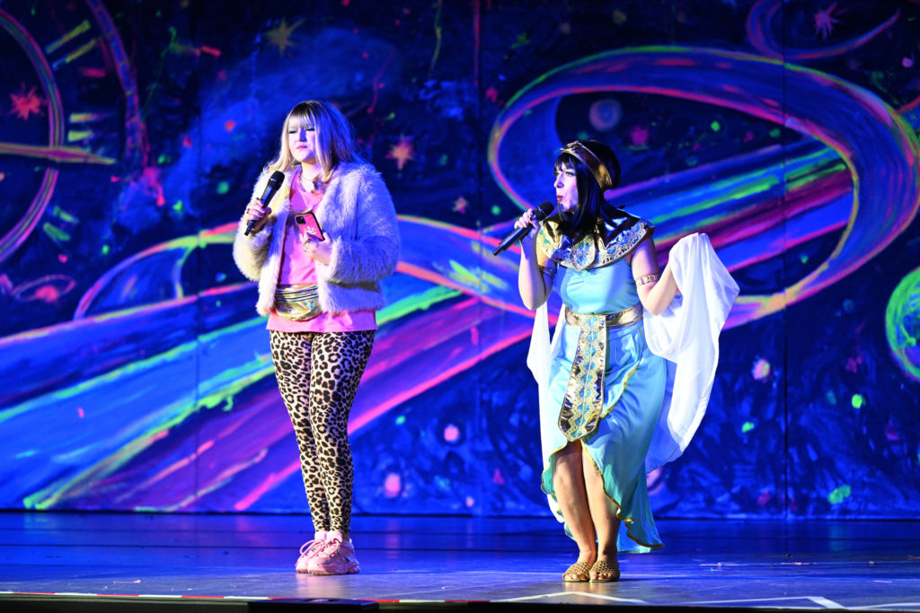 Charmant, schlagfertig und absolut zeitreisetauglich führten Fanzi als moderne Influencerin und Jenny als würdevoll-anmutige Kleopatra durch den Abend. Mit viel Witz, Charme und einem gekonnten Griff an die närrischen Zeithebel warfen sie die Zeitmaschine immer wieder aufs Neue an und steuerten das Publikum sicher und unterhaltsam durch die verschiedenen Epochen und Programmpunkte.